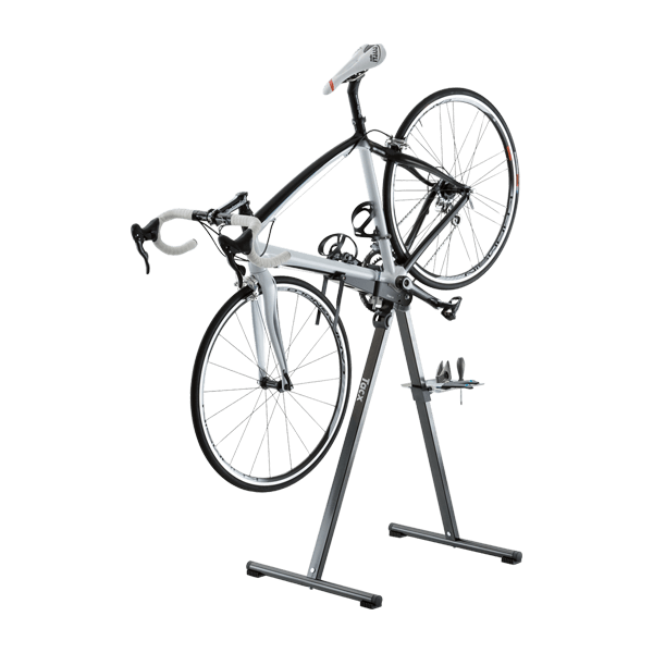 Stojak CycleStand doskonale sprawdza się podczas wykonywania drobnych prac i łatwych napraw układu kierowniczego i kierownicy. Nawet gdy mocowanie części rowerowych wymaga użycia dużej siły, można polegać na tym trwałym, stalowym stojaku.