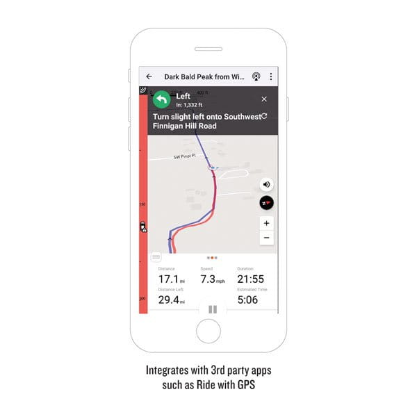 Przy używaniu z kompatybilnym smartfonem radar Varia integruje się z Twoimi ulubionymi aplikacjami, np. Ride with GPS, nakładając na mapy alerty z radaru wstecznego.